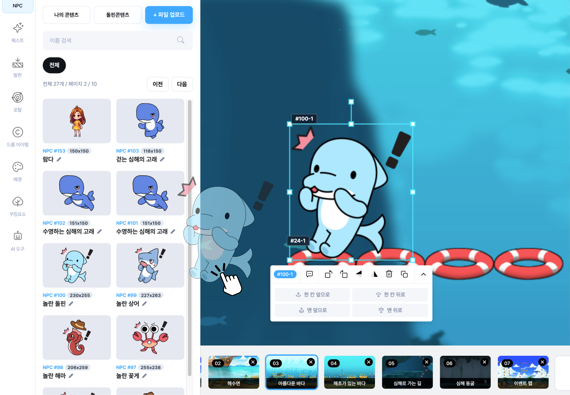 아이들이 드래그앤드롭 방식으로 맵을 직접 제작할 수 있도록 구성되어 있습니다.