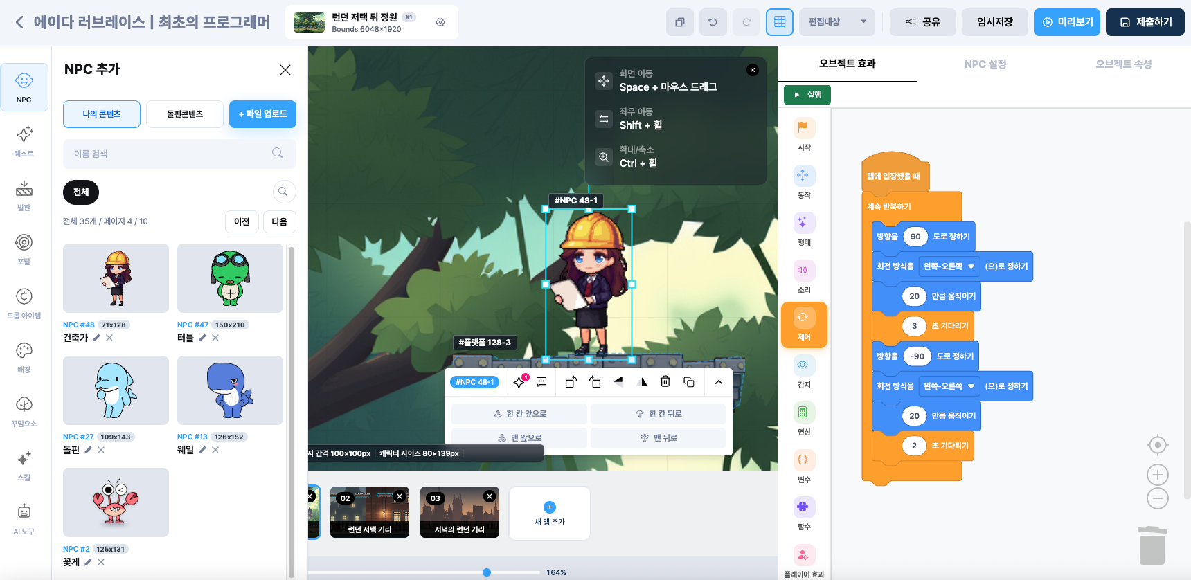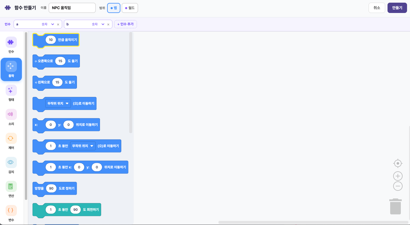블록코딩이나 파이썬을 활용해 NPC를 움직이게 하고,