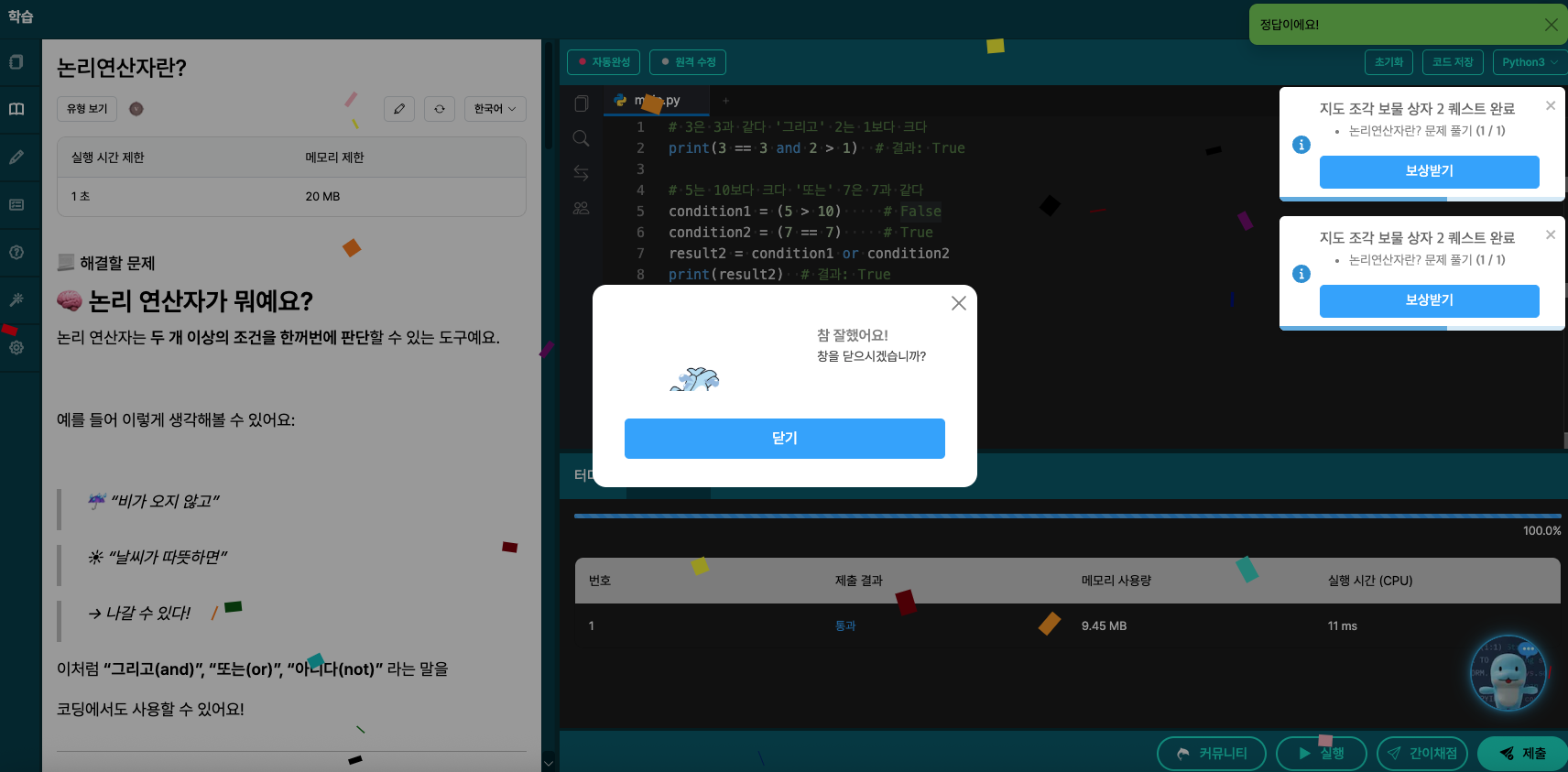 🤖 NPC와 퀘스트로 배우는 미션형 코딩 학습