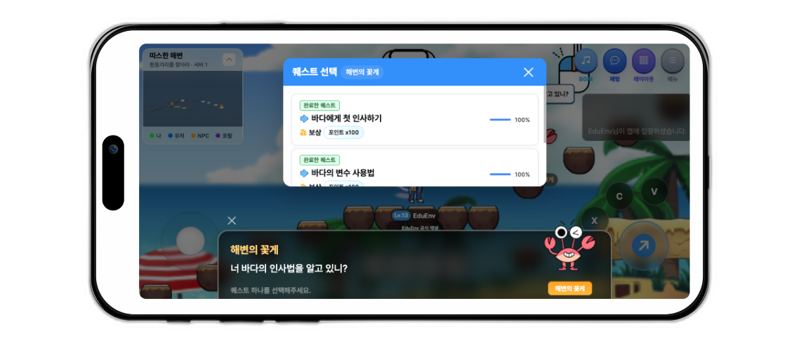 🤖 다양한 교육 콘텐츠가 퀘스트의 미션으로 변화합니다.